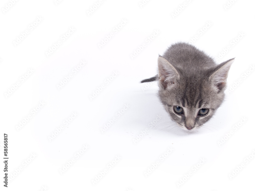 Young Nine Weeks Old Fluffy Grey Striped Kitten Over White Stock Photo Adobe Stock